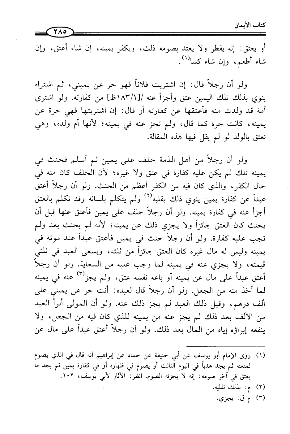 (¬1) روى الإمام أبو يوسف عن أبي حنيفة عن حماد عن إبراهيم أنه قال في الذي يصوم لمتعته ثم يجد هدياً في اليوم الثالث أو يصوم في ظهاره أو في كفارة يمين ثم يجد ما يعتق في آخر صومه: إنه لا يجزئه الصوم. انظر: الآثار لأبي يوسف، 102.