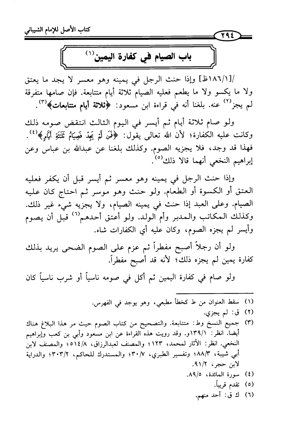 (¬3) جميع النسخ وط: متتابعة. والتصحيح من كتاب الصوم حيث مر هذا البلاع هناك أيضا. انظر: 1/ 139 و. وقد رويت هذه القراءة عن ابن مسعود وأبي بن كعب وإبراهيم النخعي. انظر: الآثار لمحمد، 123؛ والمصنف لعبد الرزاق، 8/ 514؛ والمصنف لابن أبي شيبة، 3/ 88؛ وتفسير الطبري، 7/ 30؛ والمستدرك للحاكم، 2/ 303؛ والدراية لابن حجر، 2/ 91.
