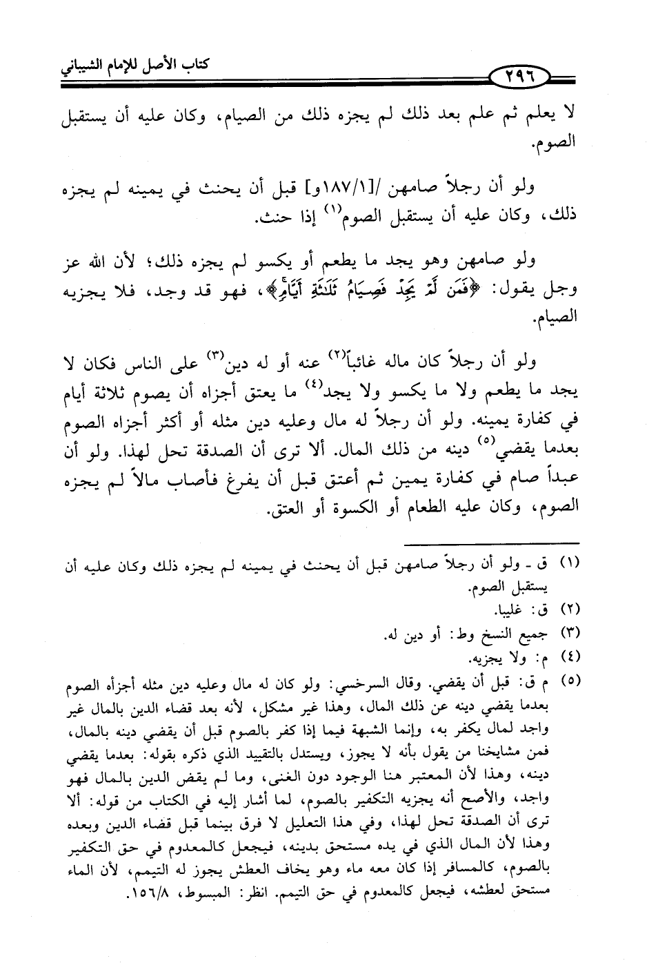 ولو أن رجلاً كان ماله غائباً (¬2) عنه أو له دين (¬3) على الناس فكان لا يجد ما يطعم ولا ما يكسو ولا يجد (¬4) ما يعتق أجزاه أن يصوم ثلاثة أيام في كفارة يمينه. ولو أن رجلاً له مال وعليه دين مثله أو أكثر أجزاه الصوم بعدما يقضي (¬5) دينه من ذلك المال. ألا ترى أن الصدقة تحل لهذا. ولو أن عبداً صام في كفارة يمين ثم أعتق قبل أن يفرغ فأصاب مالاً لم يجزه الصوم، وكان عليه الطعام أو الكسوة أو العتق.