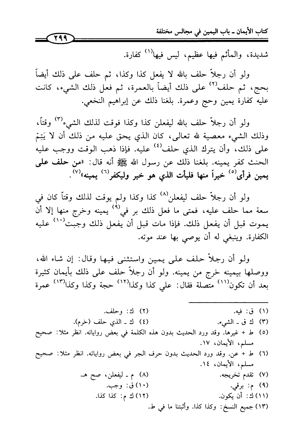 (¬5) ط + غيرها. وقد ورد الحديث بدون هذه الكلمة في بعض رواياته. انظر مثلا: صحيح مسلم، الأيمان، 17.