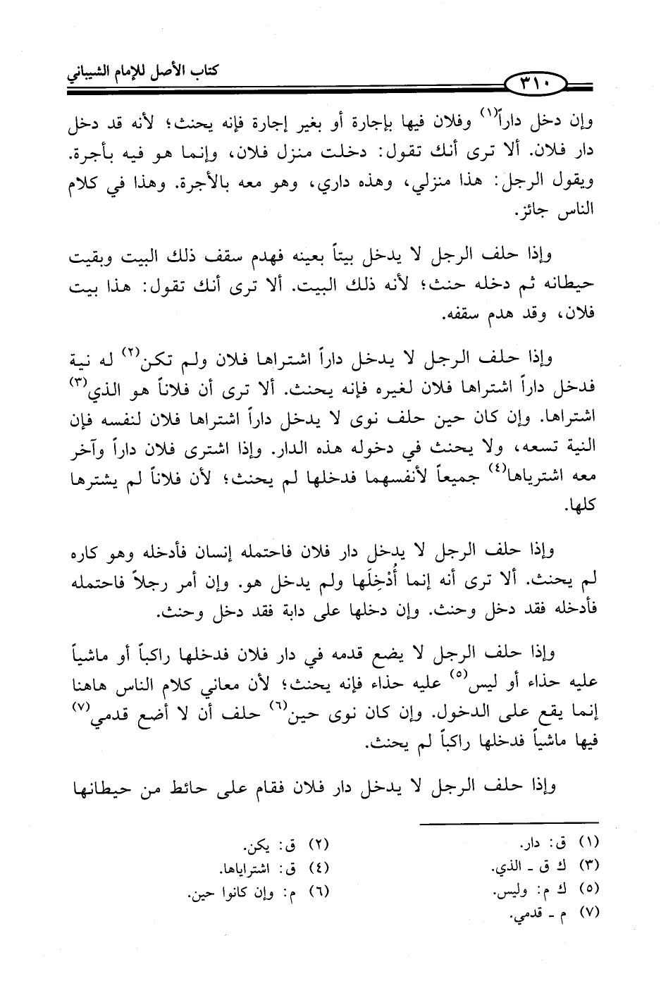 وإذا حلف الرجل لا يدخل داراً اشتراها فلان ولم تكن (¬2) له نية فدخل داراً اشتراها فلان لغيره فإنه يحنث. ألا ترى أن فلاناً هو الذي (¬3) اشتراها. وإن كان حين حلف نوى لا يدخل داراً اشتراها فلان لنفسه فإن النية تسعه، ولا يحنث في دخوله هذه الدار. وإذا اشترى فلان داراً وآخر معه اشترياها (¬4) جميعاً لأنفسهما فدخلها لم يحنث؛ لأن فلاناً لم يشترها كلها.