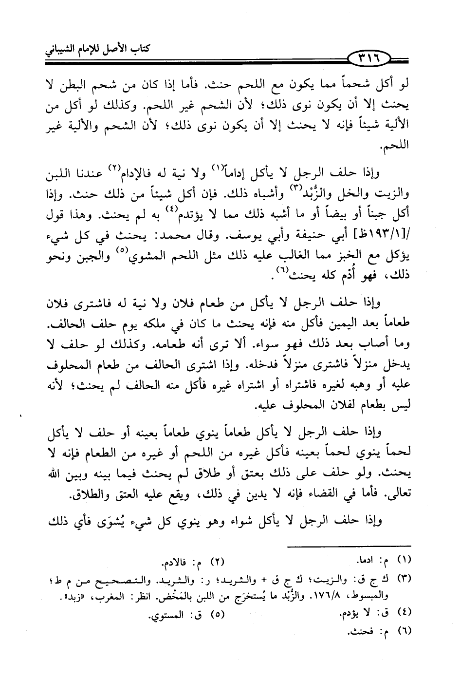 (¬3) لنا ج ق: والزيت؛ لنا ج ق + والثريد؛ ر: والثريد. والتصحيح من م ط؛ والمبسوط، 8/ 176. والزُّبْد ما يُستخرَج من اللبن بالمَخْض. انظر: المغرب، "زبد".