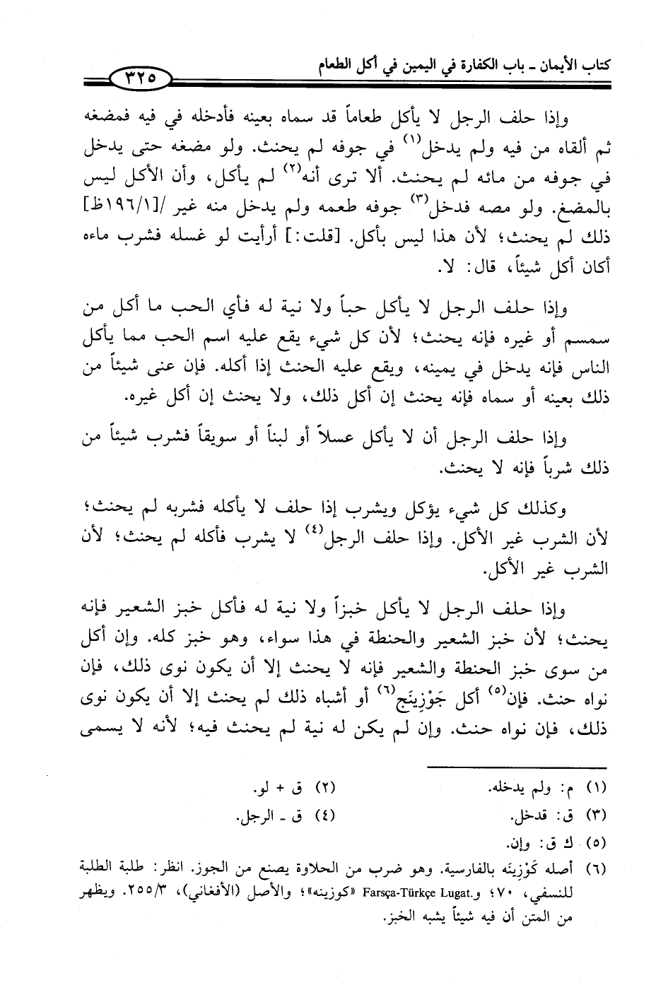 (¬6) أصله كَوْزِينَه بالفارسية. وهو ضرب من الحلاوة يصنع من الجوز. انظر: طلبة الطلبة للنسفي، 70؛ farsca-turkce lugat. " كوزينه"؛ والأصل (الأفغاني)، 3/ 255. ويظهر من المتن أن فيه شيئاً يشبه الخبز.