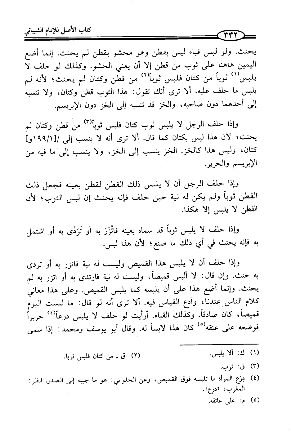 وإذا حلف الرجل لا يلبس ثوب كتان فلبس ثوباً (¬3) من قطن وكتان لم يحنث؛ لأن هذا ليس بكتان كما قال. ألا ترى أنه لا ينسب إلى كتان، وليس هذا كالخز. الخز ينسب إلى الخز، ولا ينسب إلى ما فيه من الإبريسم والحرير.