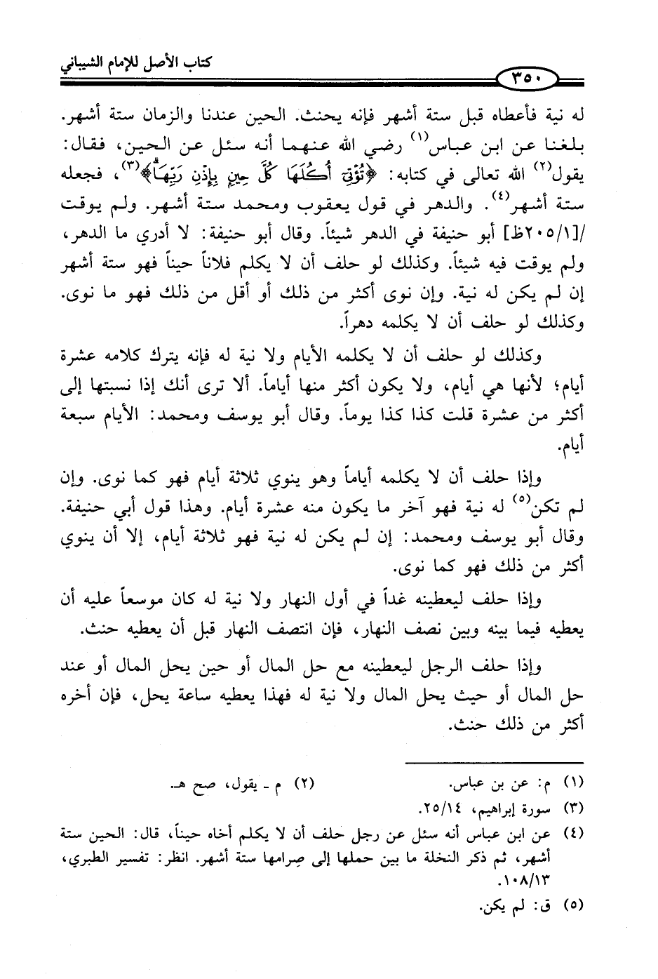 (¬4) عن ابن عباس أنه سئل عن رجل حلف أن لا يكلم أخاه حيناً، قال: الحين ستة أشهر، ثم ذكر النخلة ما بين حملها إلى صِرامها ستة أشهر. انظر: تفسير الطبري، 13/ 108.