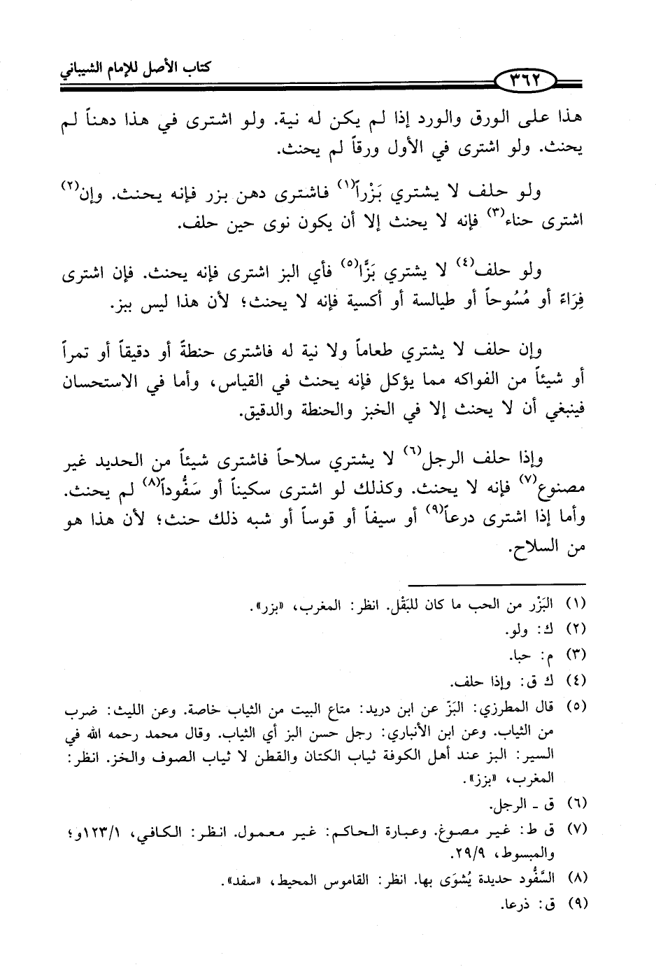 (¬7) ق ط: غير مصوغ. وعبارة الحاكم: غير معمول. انظر: الكافي، 1/ 123 و؛ والمبسوط، 9/ 29.