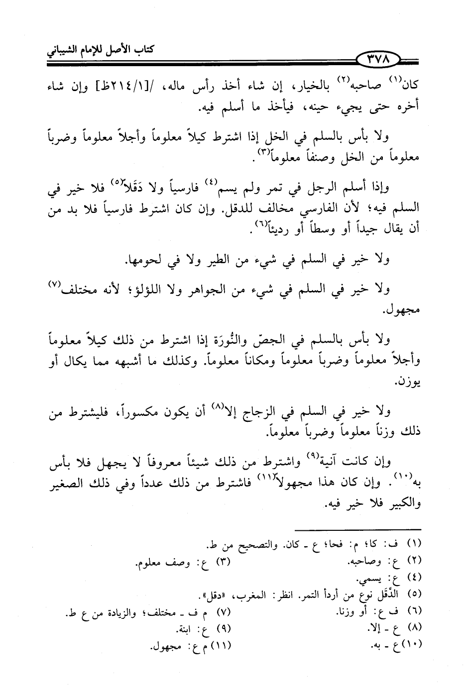 ولا بأس بالسلم في الخل إذ"شترط كيلاً معلوماً وأجلاً معلوماً وضرباً معلوماً من الخل وصنفاً معلوماً (¬3).