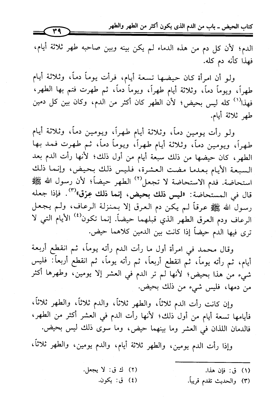 ولو رأت يومين دماً، وثلاثة أيام طهراً، ويومين دماً، وثلاثة أيام طهراً، ويومين دماً، وثلاثة أيام طهراً، ويوماً دماً، ثم طهرت فمد بها الطهر، كان حيضها من ذلك سبعة أيام من أول ذلك؛ لأنها رأت الدم بعد السبعة الأيام بعد ما مضت العشرة، فليس ذلك بحيض، وإنما ذلك استحاضة. فدم الاستحاضة لا تجعل (¬2) الطهر حيضاً؛ لأن رسول الله - صلى الله عليه وسلم - قال في المستحاضة: "ليس ذلك بحيض، إنما ذلك عِرْق" (¬3). فإذا جعله رسول الله - صلى الله عليه وسلم - عرقًا لم يكن دم العرق إلا بمنزلة الرعاف، ولم يجعل الرعاف ودم العرق الطهر الذي قبلهما حيضاً. إنما تكون (¬4) الأيام التي لا ترى فيها الدم حيضاً إذا كانت بين الدمين كلاهما حيض.