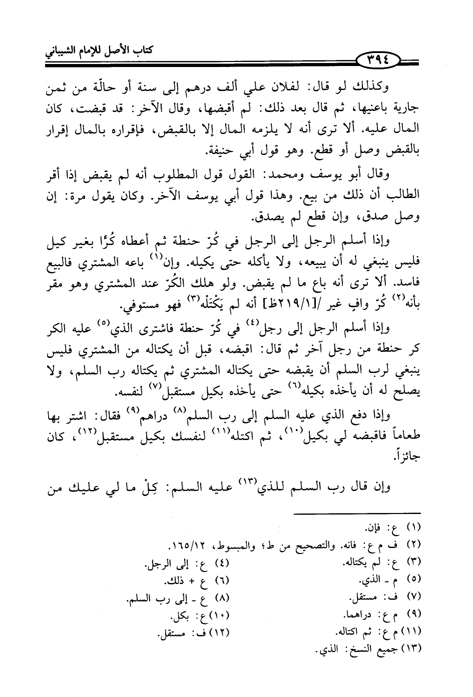 (¬2) ف م ع: فانه. والتصحيح من ط؛ والمبسوط، 12/ 165.