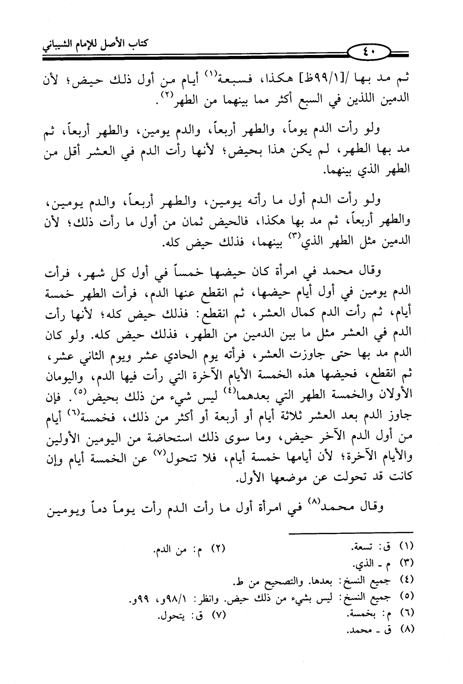 (¬5) جميع النسخ: ليس بشيء من ذلك حيض. وانظر: 1/ 98 و، 99 و.