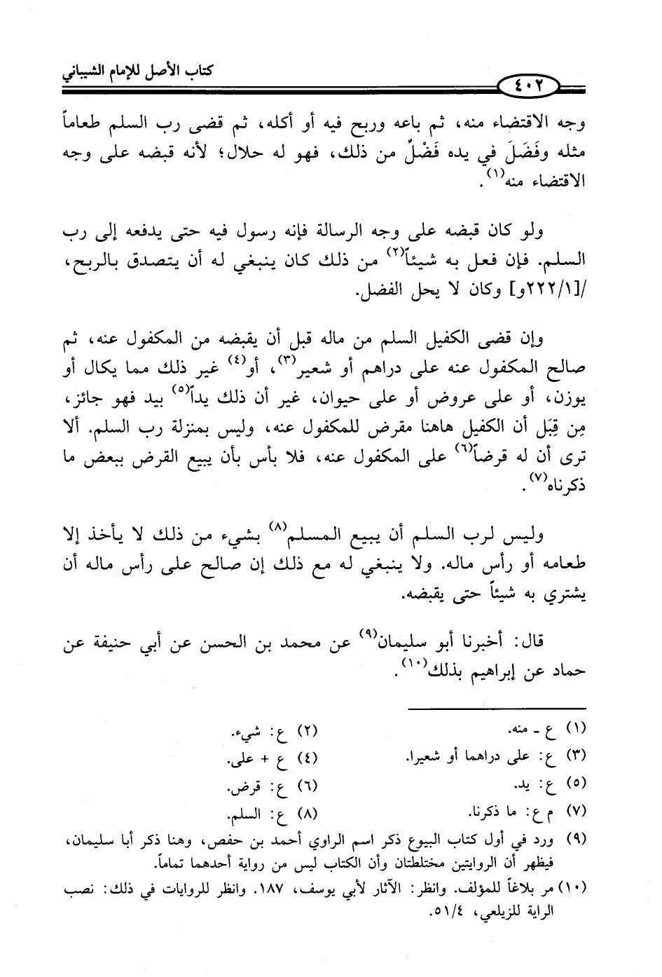 (¬9) ورد في أول كتاب البيوع ذكر اسم الراوي أحمد بن حفص، وهنا ذكر أبا سليمان، فيظهر أن الروايتين مختلطتان وأن الكتاب ليس من رواية أحدهما تماماً.