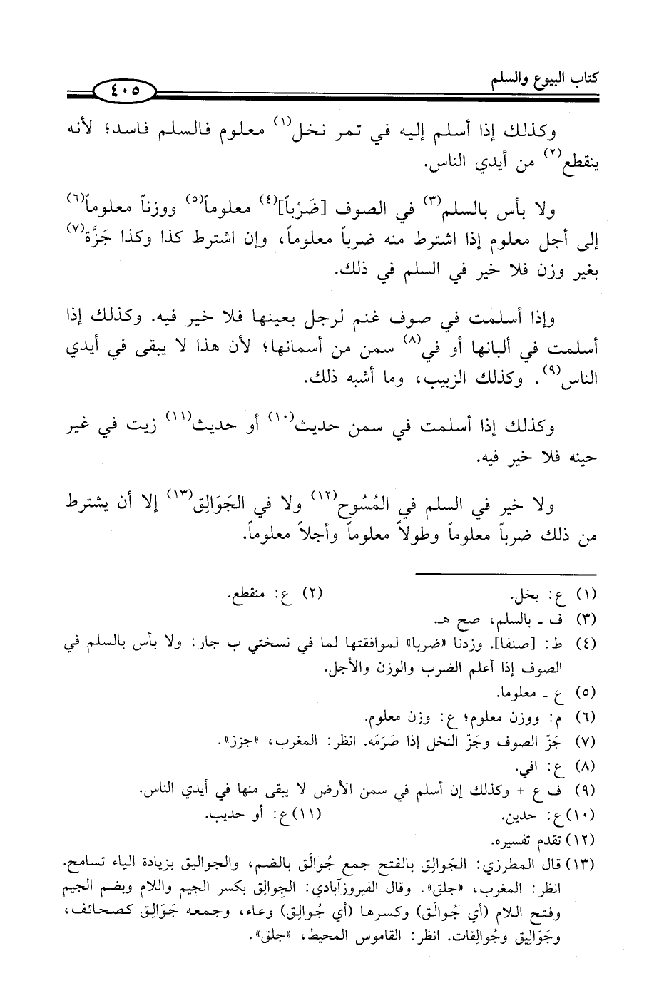 (¬4) ط: [صنفا]. وزدنا "ضربا" لموافقتها لما في نسختي ب جار: ولا بأس بالسلم في الصوف إذا أعلم الضرب والوزن والأجل.