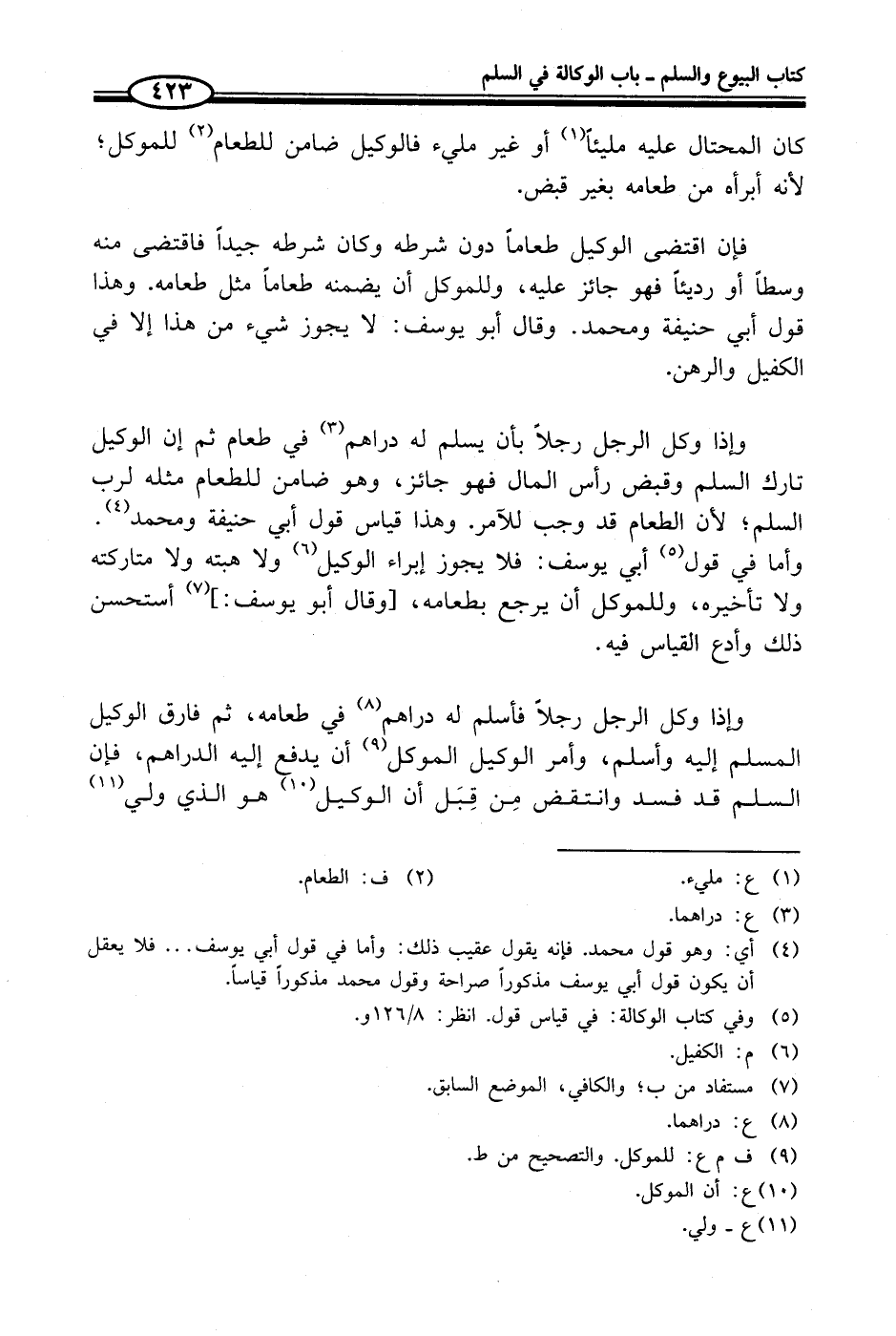 (¬5) وفي كتاب الوكالة: في قياس قول. انظر: 8/ 126 و.