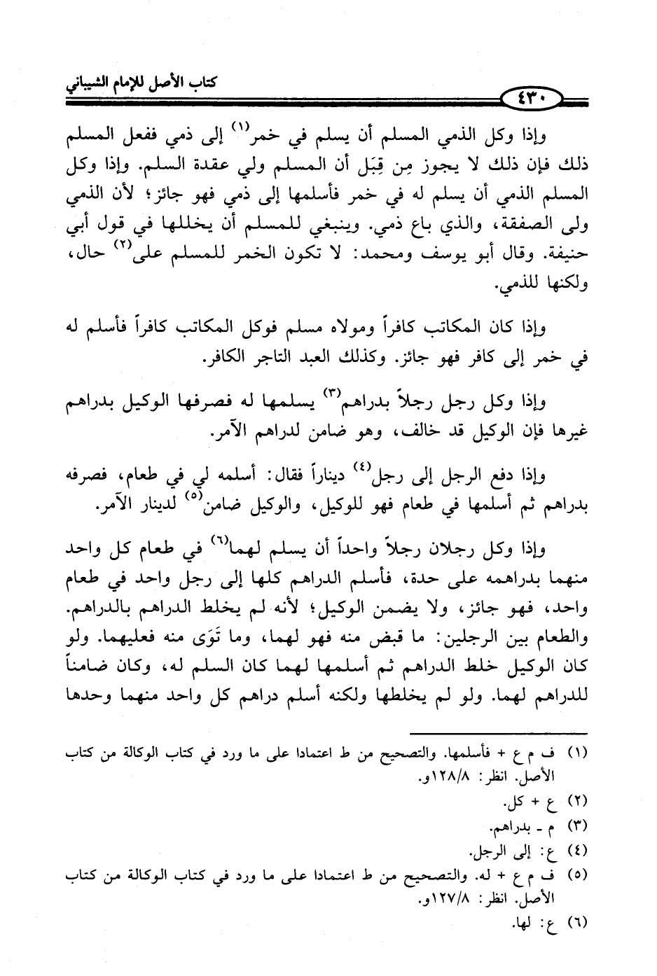 (¬5) ف م ع + له. والتصحيح من ط اعتمادا على ما ورد في كتاب الوكاله من كتاب الأصل. انظر: 8/ 127 و.