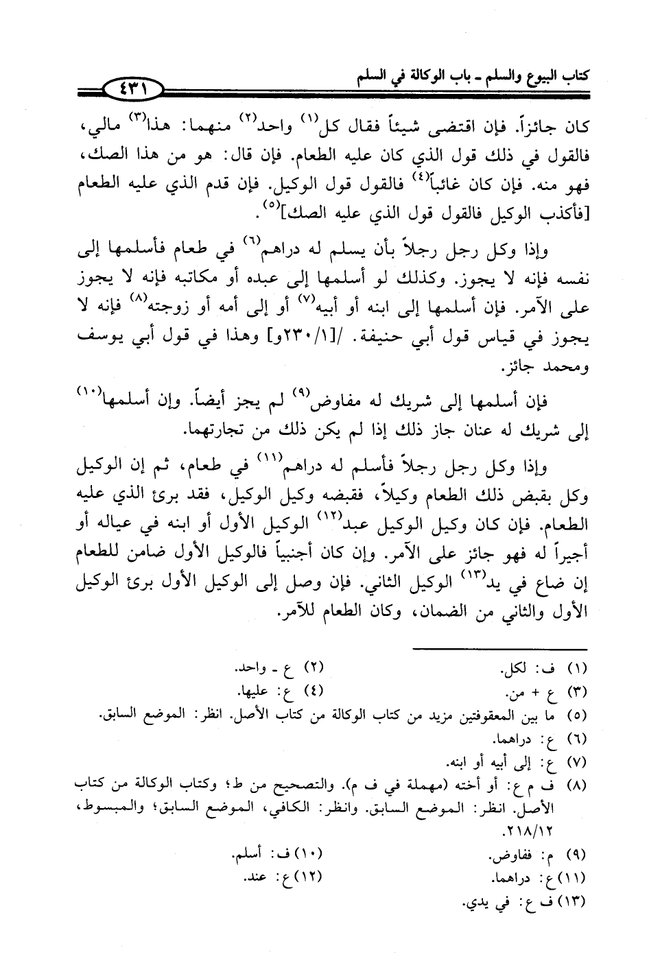 (¬5) ما بين المعقوفتين مزيد من كتاب الوكالة من كتاب الأصل. انظر: الموضع السابق.