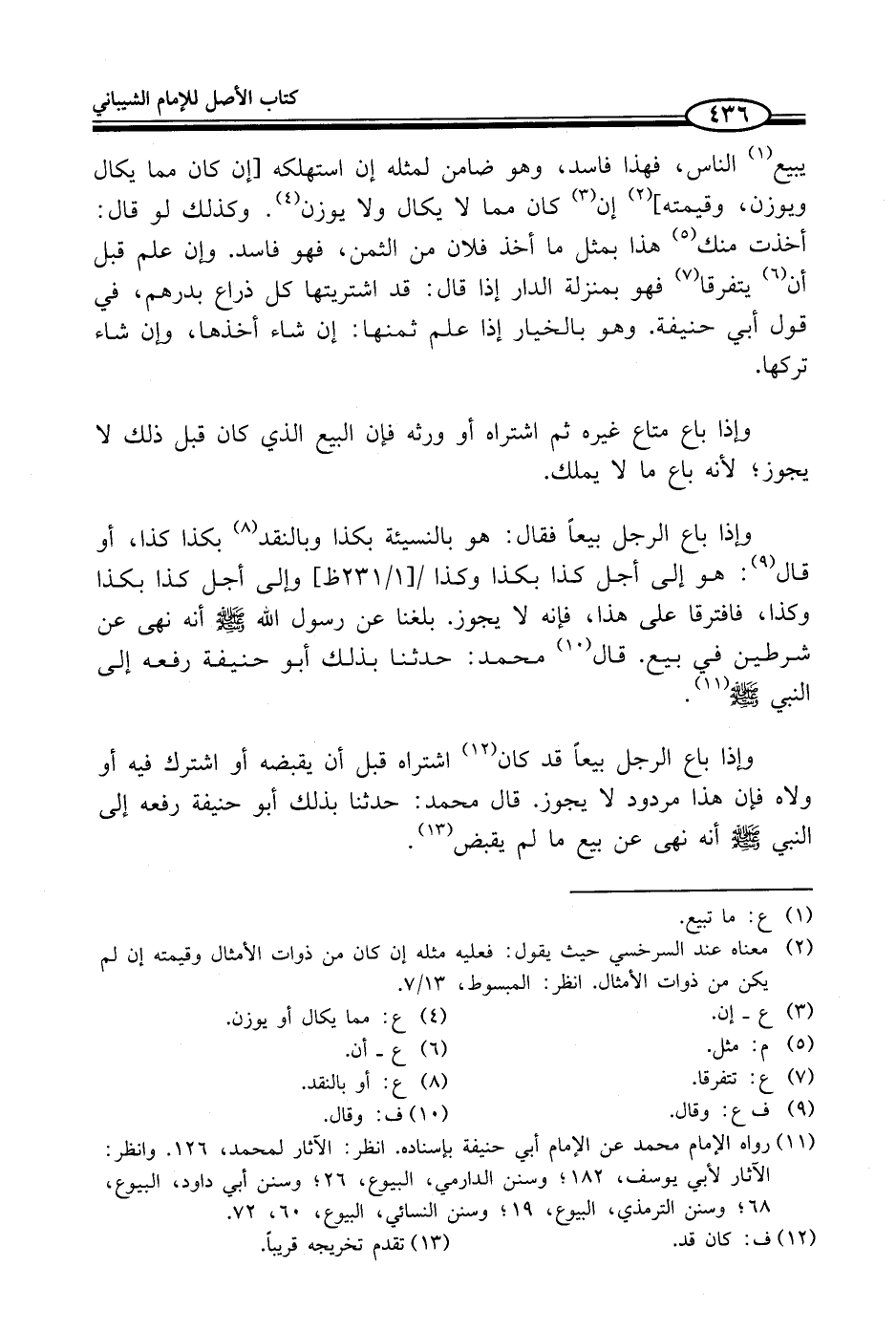 (¬11) رواه الإمام محمد عن الإمام أبي حنيفة بإسناده. انظر: الآثار لمحمد، 126. وانظر: الآثار لأبي يوسف، 182؛ وسنن الدارمي، البيوع، 26؛ وسنن أبي داود، البيوع، 68؛ وسنن الترمذي، البيوع، 19؛ وسنن النسائي، البيوع، 60، 72.