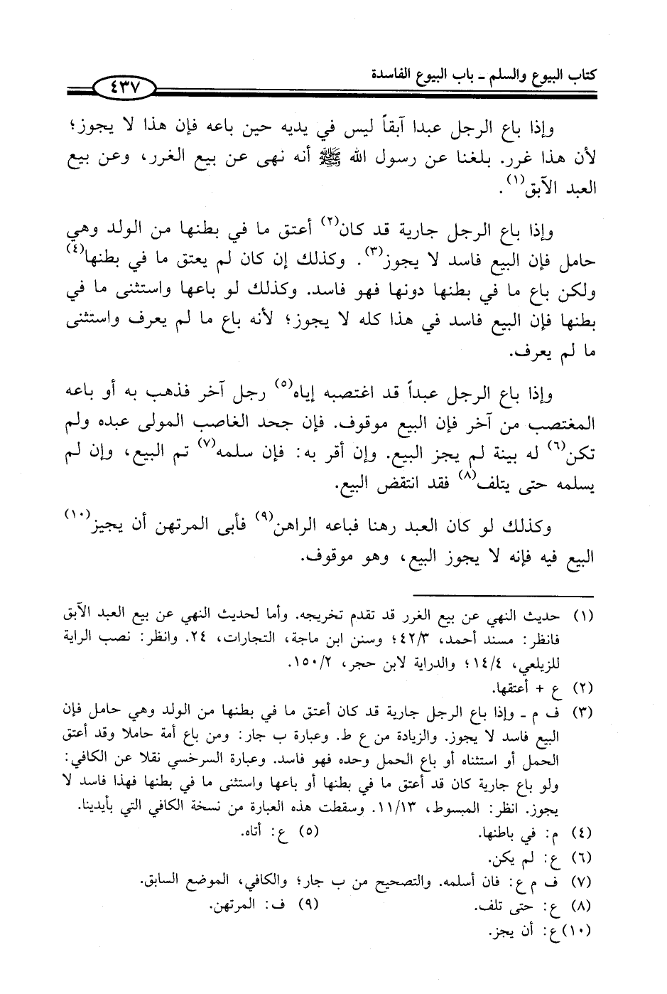 (¬1) حديث النهي عن بيع الغرر قد تقدم تخريجه. وأما لحديث النهي عن بيع العبد الآبق فانظر: مسند أحمد، 3/ 42؛ وسنن ابن ماجة، التجارات، 24. وانظر: نصب الراية للزيلعي، 4/ 14؛ والدراية لابن حجر، 2/ 150.