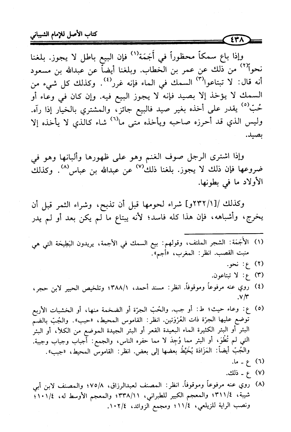 وإذا باع سمكاً محظوراً في أَجَمَة (¬1) فإن البيع باطل لا يجوز. بلغنا نحواً (¬2) من ذلك عن عمر بن الخطاب. وبلغنا أيضاً عن عبد الله بن مسعود أنه قال: لا تبتاعوا (¬3) السمك في الماء فإنه غرر (¬4). وكذلك كل شيء من السمك لا يؤخذ إلا بصيد فإنه لا يجوز البيع فيه. وإن كان في وعاء أو حُبّ (¬5) يقدر على أخذه بغير صيد فالبيع جائز، والمشتري بالخيار إذا رآه. وليس الذي قد أحرزه صاحبه ويأخذه متى ما (¬6) شاء كالذي لا يأخذه إلا بصيد.