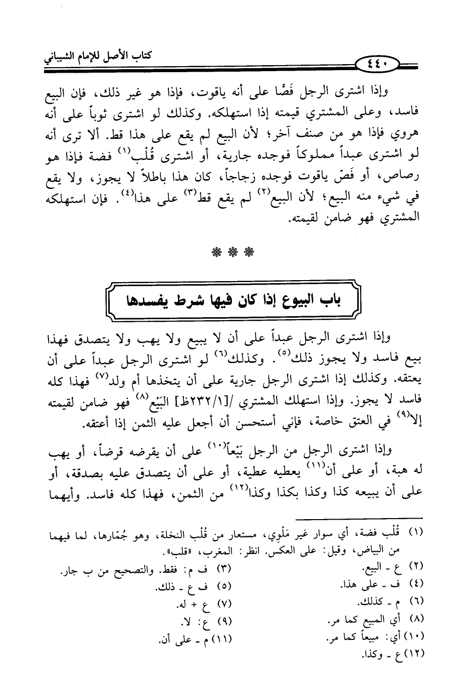 وإذا اشترى الرجل عبداً على أن لا يبيع ولا يهب ولا يتصدق فهذا بيع فاسد ولا يجوز ذلك (¬5). وكذلك (¬6) لو اشترى الرجل عبداً على أن يعتقه. وكذلك إذا اشترى الرجل جارية على أن يتخذها أم ولد (¬7) فهذا كله فاسد لا يجوز. وإذا استهلك المشتري البَيْع (¬8) فهو ضامن لقيمته إلا (¬9) في العتق خاصة، فإني أستحسن أن أجعل عليه الثمن إذا أعتقه.