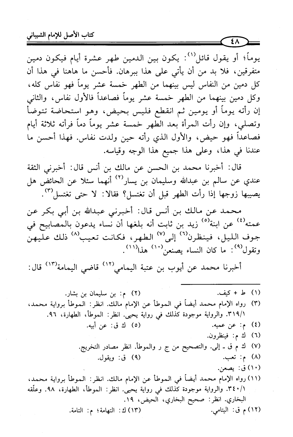 (¬11) رواه الإِمام محمد أيضاً في الموطأ عن الإِمام مالك. انظر: الموطأ برواية محمد، 1/ 340. والرواية موجودة كذلك في رواية يحيى. انظر: الموطأ، الطهارة، ما. وعلقه البخاري. انظر: صحيح البخاري، الحيض، 19.