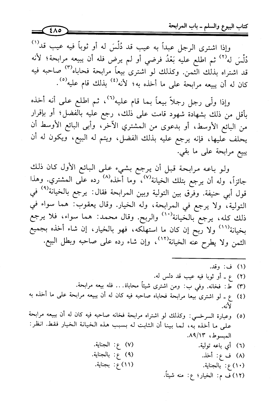 (¬5) وعبارة السرخسي: وكذلك لو اشتراه مرابحة فخانه صاحبه فيه كان له أن يبيعه مرابحة على ما أخذه به، لما بينا أن الثابت له بسبب هذه الخيانة الخيار فقط. انظر: المبسوط، 13/ 89.