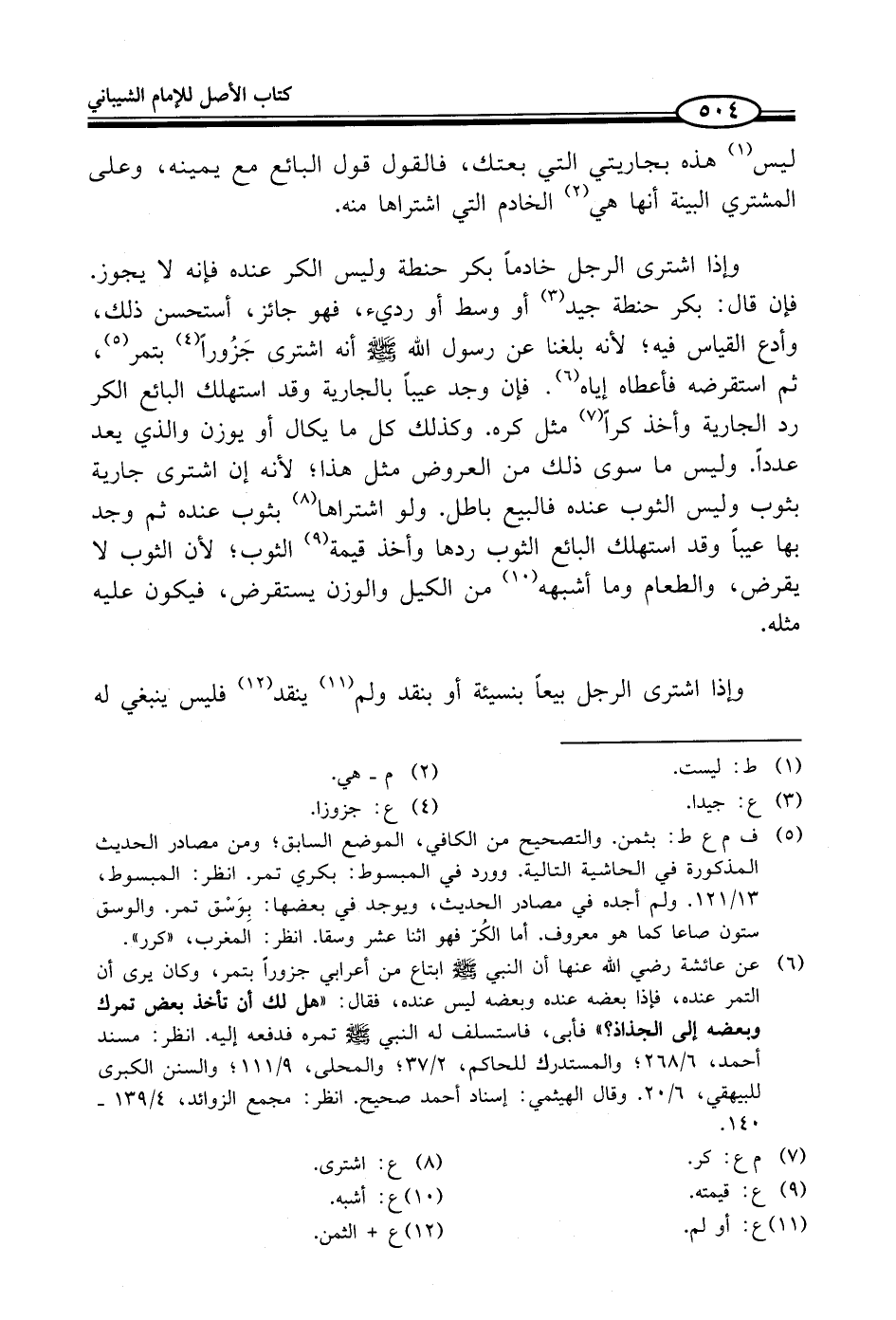 (¬5) ف م ع ط: بثمن. والتصحيح من الكافي، الموضع السابق؛ ومن مصادر الحديث المذكورة في الحاشية التالية. وورد في المبسوط: بكري تمر. انظر: المبسوط، 13/ 121. ولم أجده في مصادر الحديث، ويوجد في بعضها: بِوَسْق تمر. والوسق ستون صاعا كما هو معروف. أما الكُرّ فهو اثنا عشر وسقا. انظر: المغرب، "كرر".