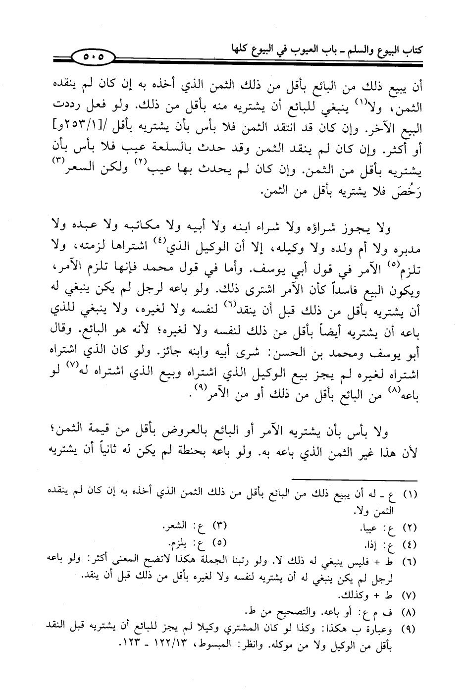 (¬9) وعبارة ب هكذا: وكذا لو كان المشتري وكيلا لم يجز للبائع أن يشتريه قبل النقد بأقل من الوكيل ولا من موكله. وانظر: المبسوط، 13/ 122 - 123.