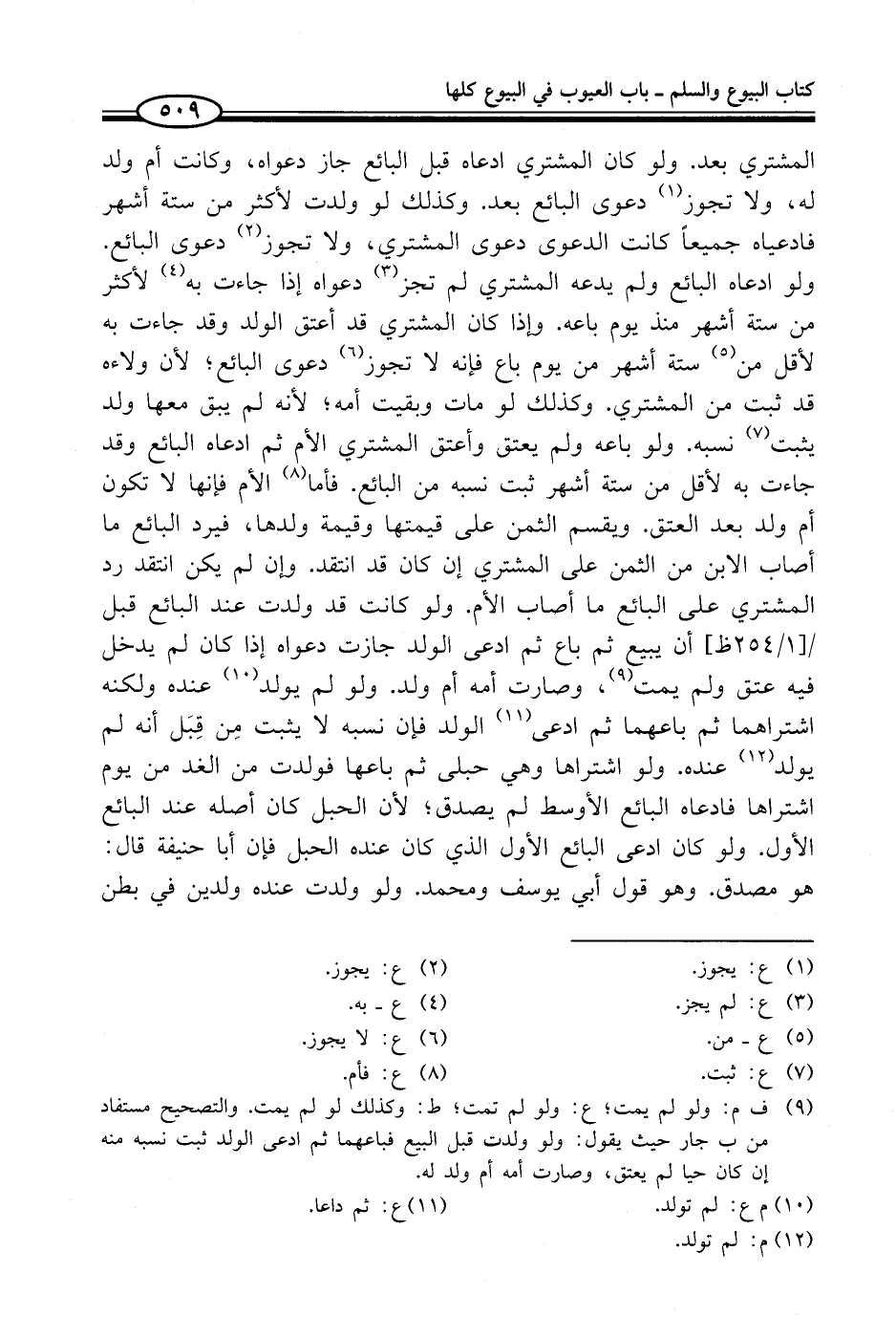 (¬9) ف م: ولو لم يمت؛ ع: ولو لم تمت؛ ط: وكذلك لو لم يمت. والتصحيح مستفاد من ب جار حيث يقول: ولو ولدت قبل البيع فباعهما ثم ادعى الولد ثبت نسبه منه إن كان حيا لم يعتق، وصارت أمه أم ولد له.
