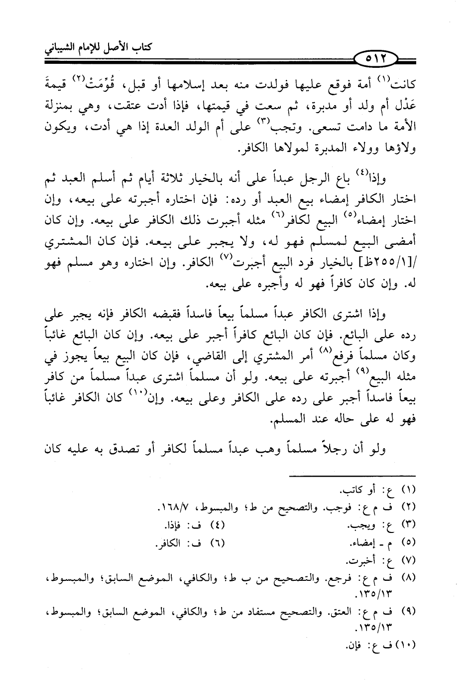 (¬8) ف م ع: فرجع. والتصحيح من ب ط؛ والكافي، الموضع السابق؛ والمبسوط، 13/ 135.