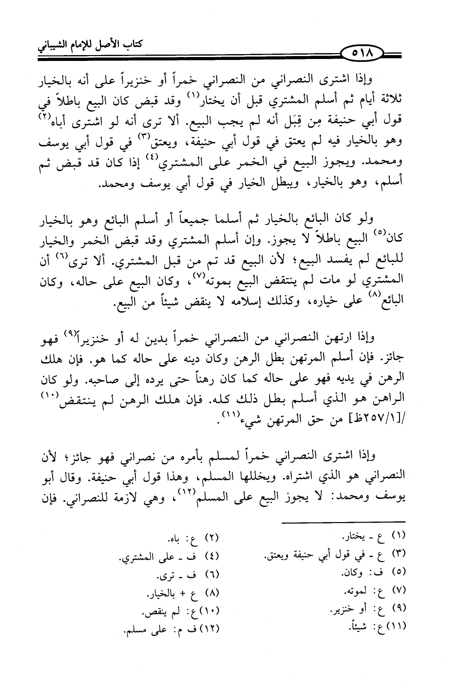 ولو كان البائع بالخيار ثم أسلما جميعاً أو أسلم البائع وهو بالخيار كان (¬5) البيع باطلاً لا يجوز. وإن أسلم المشتري وقد قبض الخمر والخيار للبائع لم يفسد البيع؛ لأن البيع قد تم من قبل المشتري. ألا ترى (¬6) أن المشتري لو مات لم ينتقض البيع بموته (¬7)، وكان البيع على حاله، وكان البائع (¬8) على خياره، وكذلك إسلامه لا ينقض شيئاً من البيع.