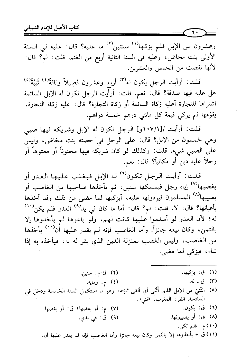 قلت: أرأيت الرجل تكون (¬6) له الإبل فيغلب عليها العدو أو يغصبها (¬7) إياه رجل فيمسكها سنين، ثم يأخذها صاحبها من الغاصب أو يصيبها (¬8) المسلمون فيردونها عليه، أيزكيها لما مضى من ذلك وقد أخذها بأعيانها؟ قال: لا. قلت: لم؟ قال: أما ما كان في يد (¬9) العدو فلم يكن (¬10) له؛ لأن العدو لو أسلموا عليها كانت لهم، ولو باعوها لم يأخذوها إلا بالثمن، وكان بيعه جائزاً. وأما الغاصب فإنه لم يقدر عليها أن (¬11) يأخذها من الغاصب، وليس الغصب بمنزلة الدين الذي يقر له به، فيأخذه به إذا شاء، فيزكي لما مضى.