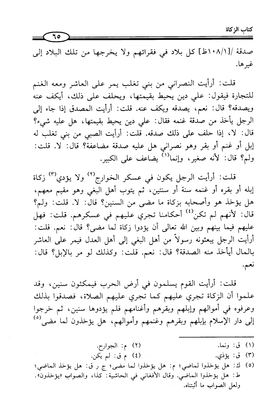 (¬5) ك: هل يؤخذوا لماضي؛ م: هل يؤخذوا لما مضى؛ ج ر ق: هل يؤخذ الماضي؛ ط: هل يؤخذوا الماضي. وقال الأفغاني في الحاشية: كذا، والصواب "يؤخذون". ولعل الصواب ما أثبتناه.