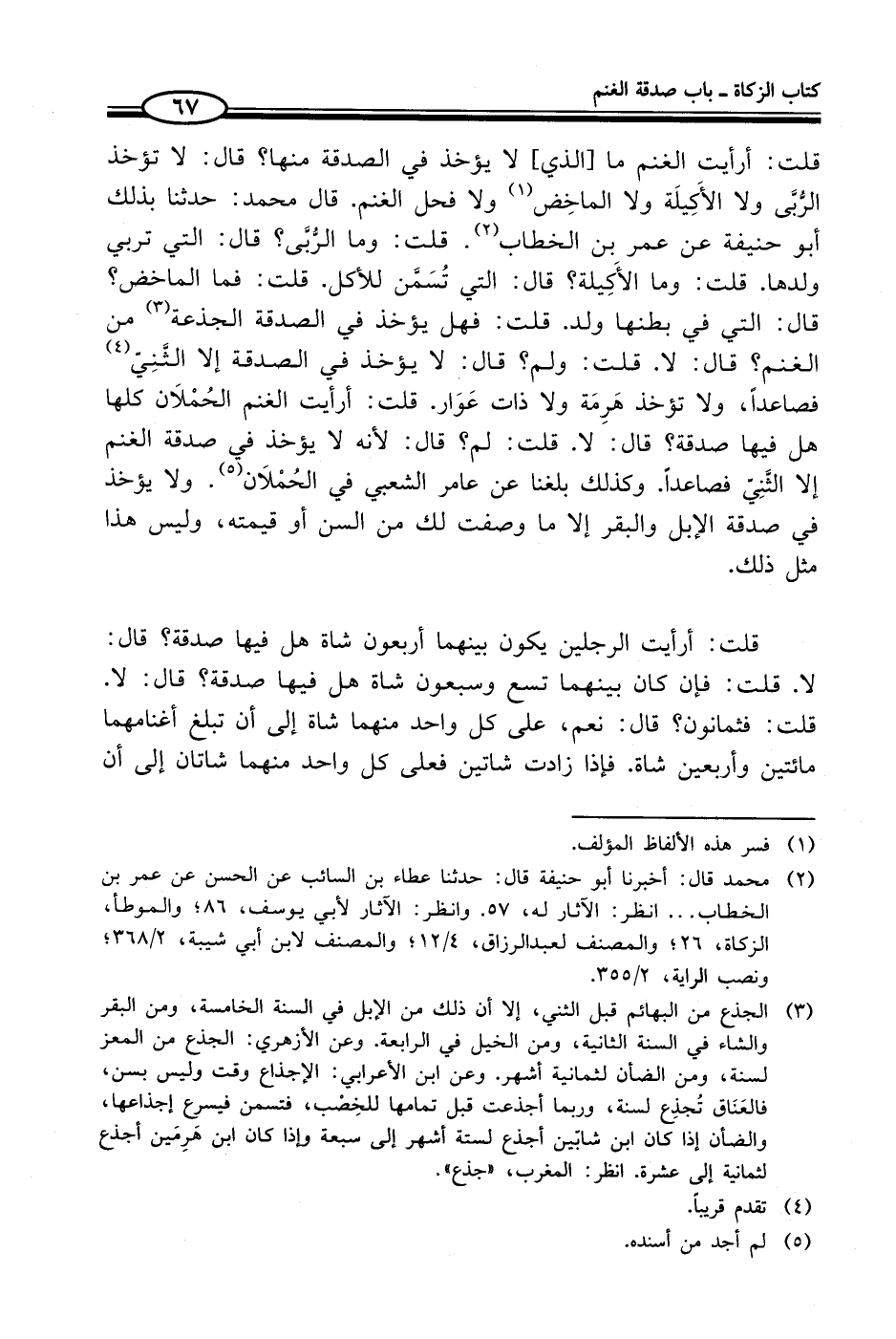 (¬2) محمد قال: أخبرنا أبو حنيفة قال: حدثنا عطاء بن السائب عن الحسن عن عمر بن الخطاب ... انظر: الآثار له، 57. وانظر: الآثار لأبي يوسف، 86؛ والموطأ، الزكاة، 26؛ والمصنف لعبد الرزاق، 4/ 12؛ والمصنف لابن أبي شيبة، 2/ 368؛ ونصب الراية، 2/ 355.