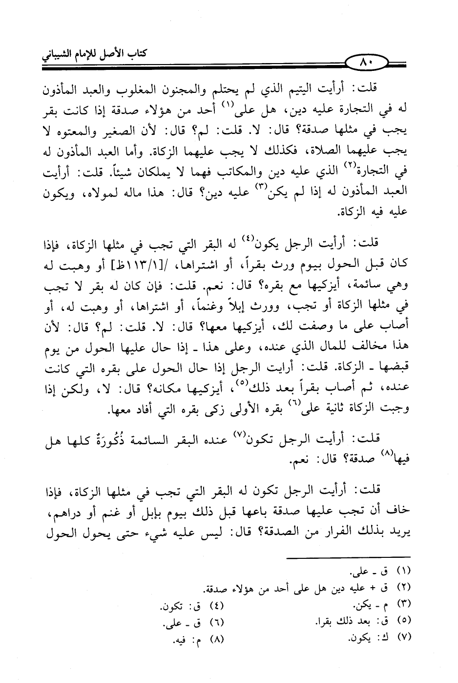 قلت: أرأيت الرجل تكون (¬7) عنده البقر السائمة ذُكُورَةٌ كلها هل فيها (¬8) صدقة؟ قال: نعم.