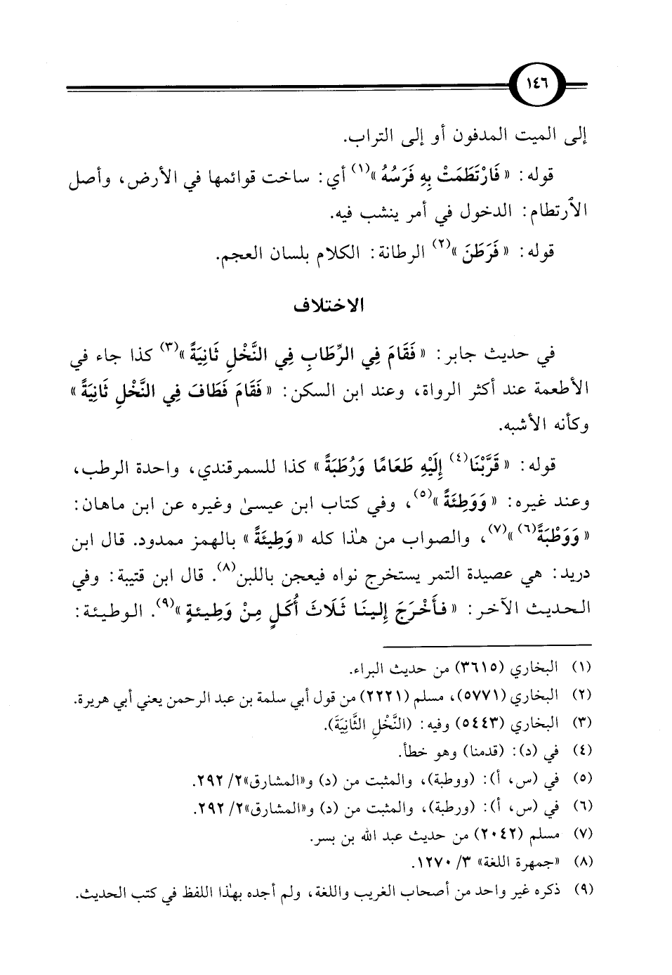 في حديث جابر: "فَقَامَ في الرِّطَابِ فِي النَّخْلِ ثَانِيَةً" (¬3) كذا جاء في الأطعمة عند أكثر الرواة، وعند ابن السكن: "فَقَامَ فَطَافَ في النَّخْلِ ثَانِيَةً" وكأنه الأشبه.