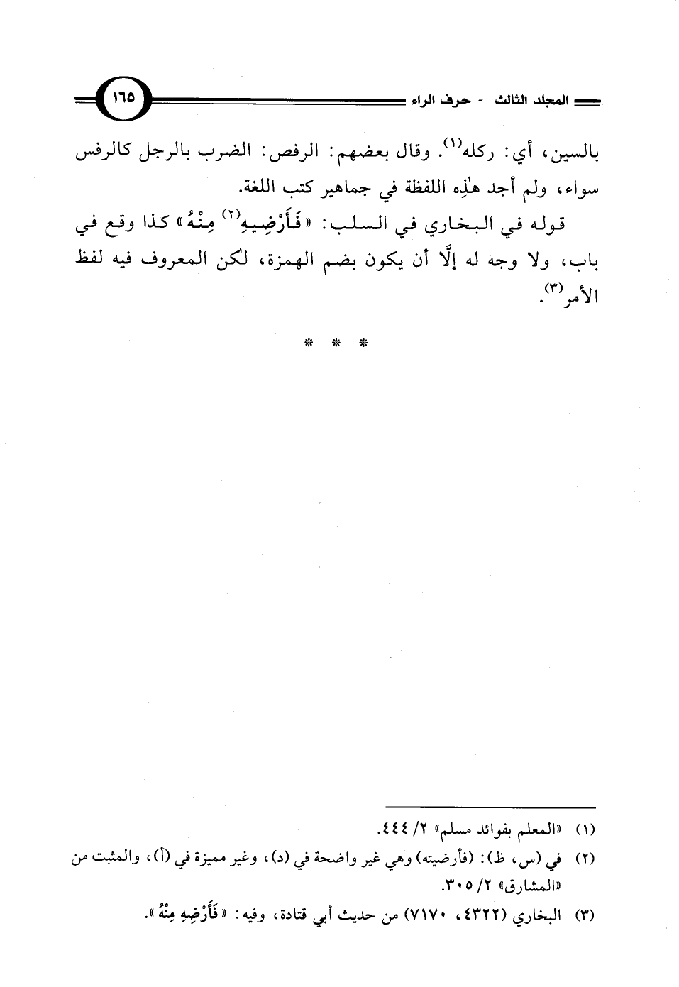 قوله في البخاري في السلب: "فَأَرْضِيهِ (¬2) مِنْهُ" كذا وقع في باب، ولا وجه له إلاَّ أن يكون بضم الهمزة، لكن المعروف فيه لفظ الأمر (¬3).