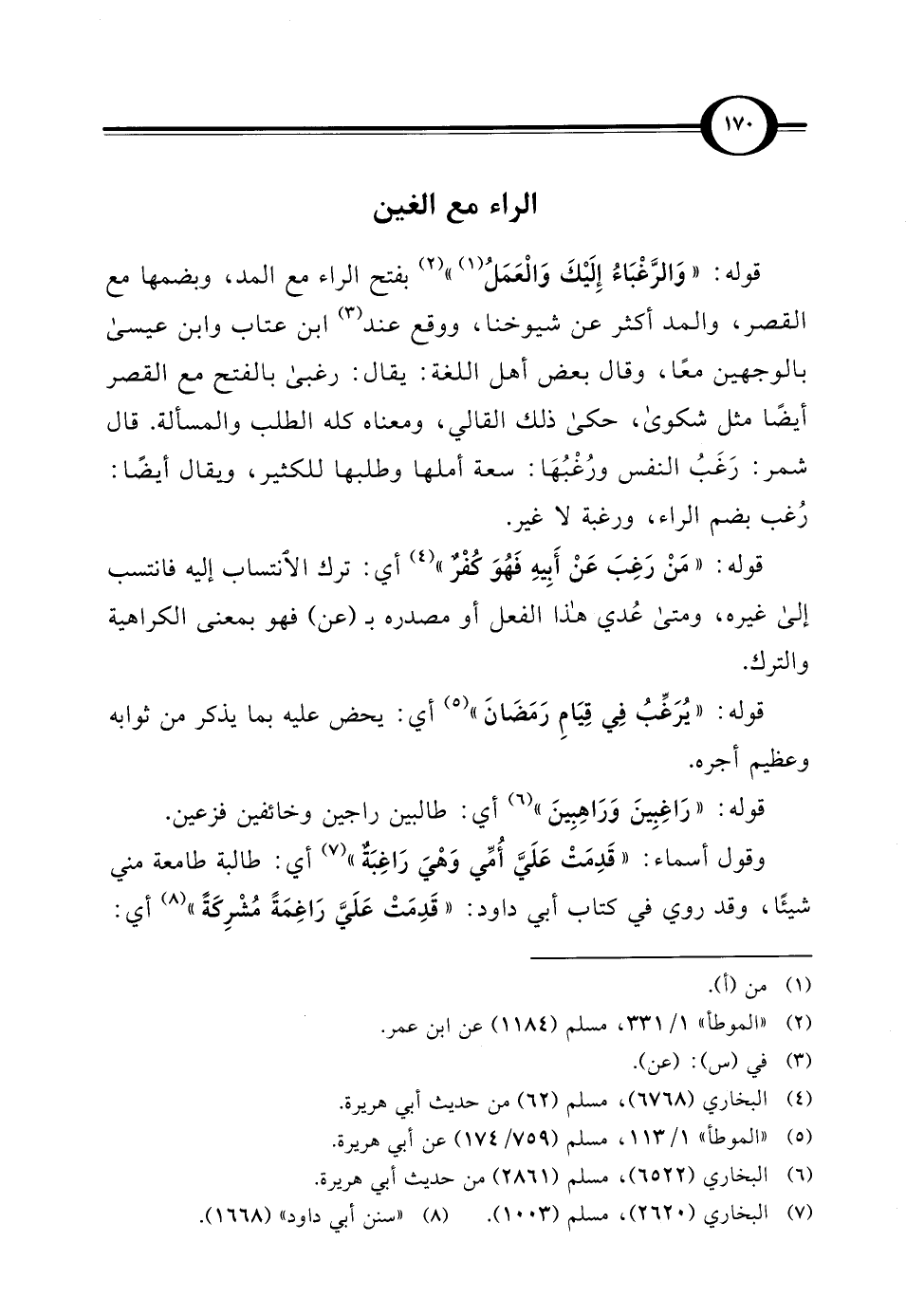 قوله: "وَالرَّغْبَاءُ إِلَيْكَ وَالْعَمَلُ (¬1) " (¬2) بفتح الراء مع المد، وبضمها مع القصر، والمد أكثر عن شيوخنا، ووقع عند (¬3) ابن عتاب وابن عيسى بالوجهين معًا، وقال بعض أهل اللغة: يقال: رغبى بالفتح مع القصر أيضاً مثل شكوى، حكا ذلك القالي، ومعناه كله الطلب والمسألة. قال شمر: رَغَبُ النفس ورُغْبُهَا: سعة أملها وطلبها للكثير، ويقال أيضاً: رُغب بضم الراء، ورغبة لا غير.