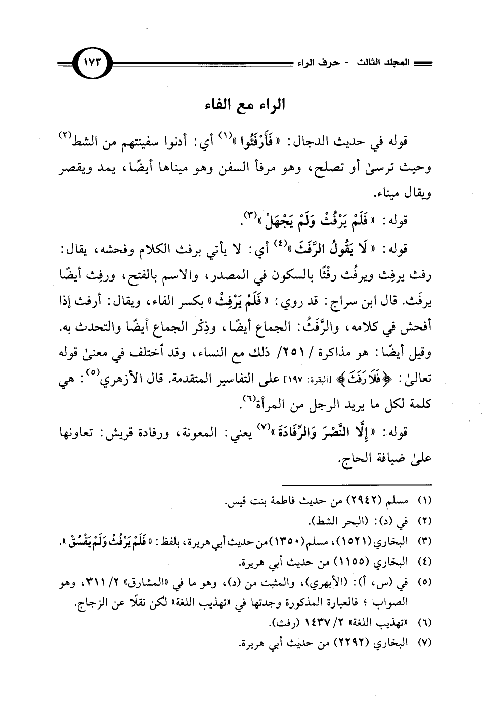 (¬6) "تهذيب اللغة" 2/ 1437 (رفث).