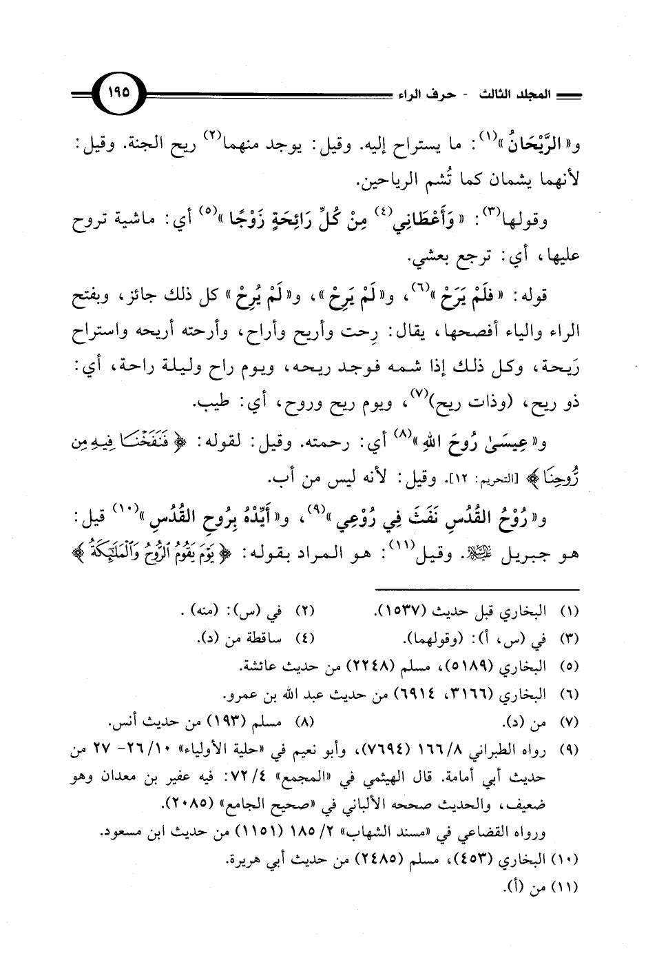 و"الرَّيْحَانُ" (¬1): ما يستراح إليه. وقيل: يوجد منهما (¬2) ريح الجنة. وقيل: لأنهما يشمان كما تُشم الرياحين.