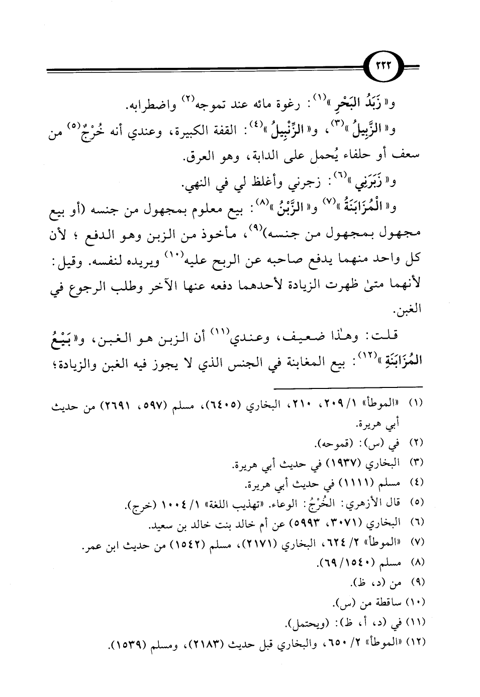 قلت: وهذا ضعيف، وعندي (¬11) أن الزبن هو الغبن، و"بَيْعُ المُزَابَنَةِ" (¬12): بيع المغابنة في الجنس الذي لا يجوز فيه الغبن والزيادة؛