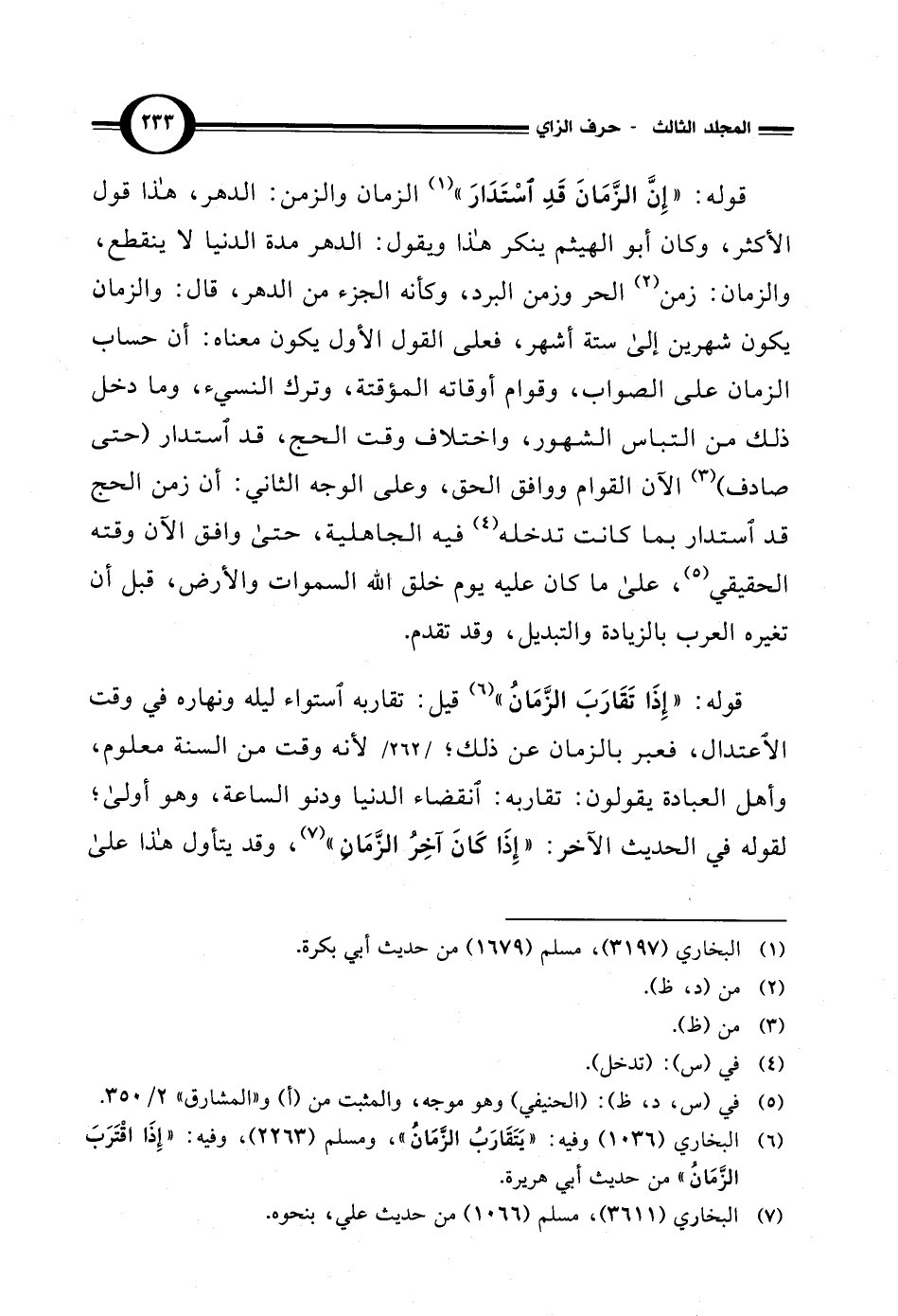 (¬6) البخاري (1036) وفيه: "يَتَقَارَبُ الزَّمَانُ"، ومسلم (2263)، وفيه: "إِذَا اقْتَرَبَ