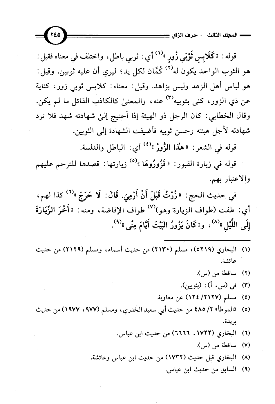 قوله في الشعر: "هذا الزُّورُ" (¬4) أي: الباطل والدلسة.