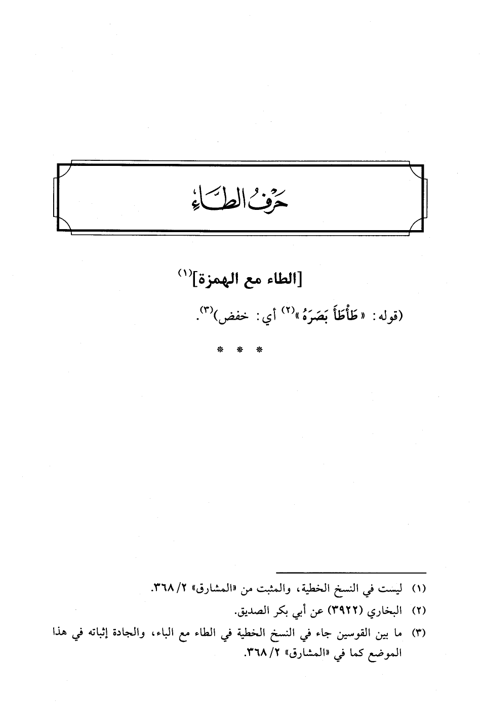 (¬3) ما بين القوسين جاء في النسخ الخطية في الطاء مع الباء، والجادة إثباته في هذا الموضع كما في "المشارق" 2/ 368.