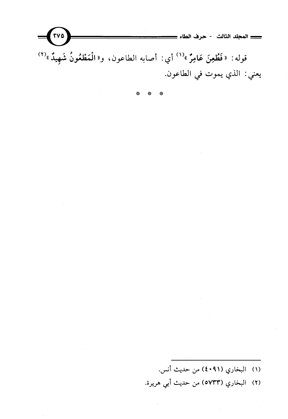 قوله: "فَطُعِنَ عَامِرٌ" (¬1) أي: أصابه الطاعون، و"الْمَطْعُونُ شَهِيدٌ" (¬2) يعني: الذي يموت في الطاعون.