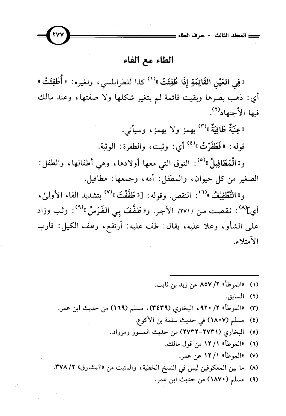 و"التَّطْفِيْفُ" (¬6): النقص. وقوله: ["طَفَّفْتَ" (¬7) بتشديد الفاء الأولى، أي] (¬8): نقصت من الأجر. و"طَفَّفَ بِي الفَرَسُ" (¬9): وثب وزاد على الشأو، وعلا عليه، يقال: طف عليه: ارتفع، وطف الكيل: قارب الامتلاء.