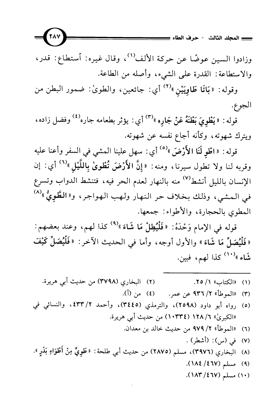 قوله: "اطْوِ لَنَا الأَرْضَ" (¬5) أي: سهل علينا المشي في السفر وأعنا عليه وقربه لنا ولا تطول سيرنا، ومنه: "إِنَّ الأَرْضَ تُطْوى بِاللَّيْلِ" (¬6) أي: إن الإنسان بالليل أنشط (¬7) منه بالنهار لعدم الحر فيه، فتنشط الدواب وتسرع في المشي، وذلك بخلاف حر النهار ولهب الهواجر، و"الطَّوِيُّ" (¬8) المطوي بالحجارة، والأطواء: جمعها.