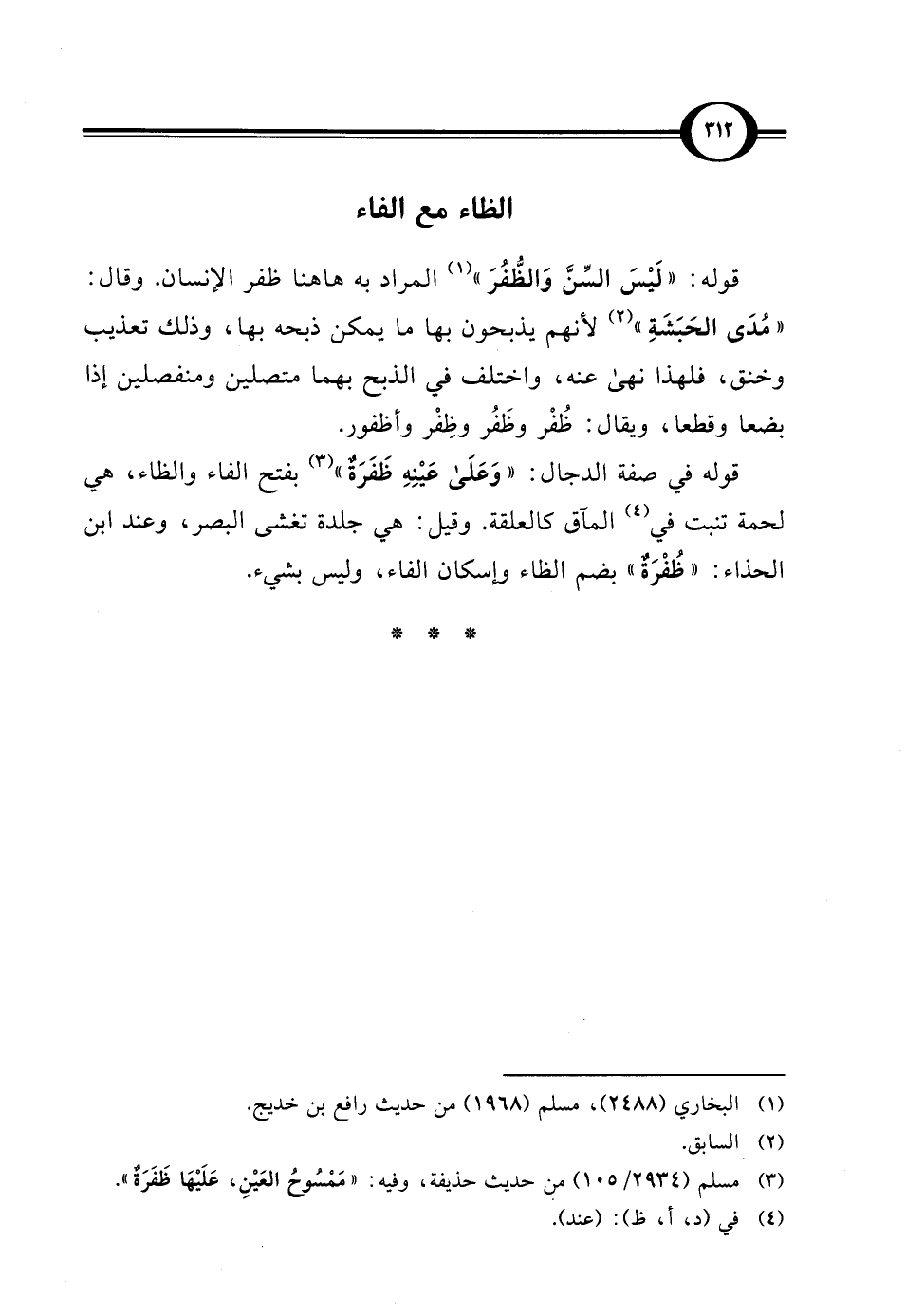 قوله في صفة الدجال: "وَعَلَى عَيْنِهِ ظَفَرَةٌ" (¬3) بفتح الفاء والظاء، هي