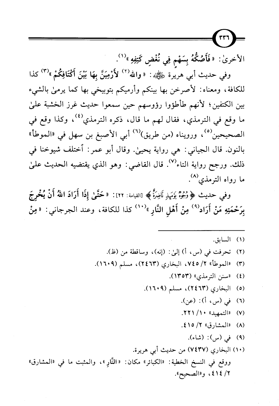 (¬10) البخاري (7437) من حديث أبي هريرة. ووقع في النسخ الخطية: "الكبائر" مكان: "النَّارِ"، والمثبت ما في "المشارق" 2/ 414، و"الصحيح".