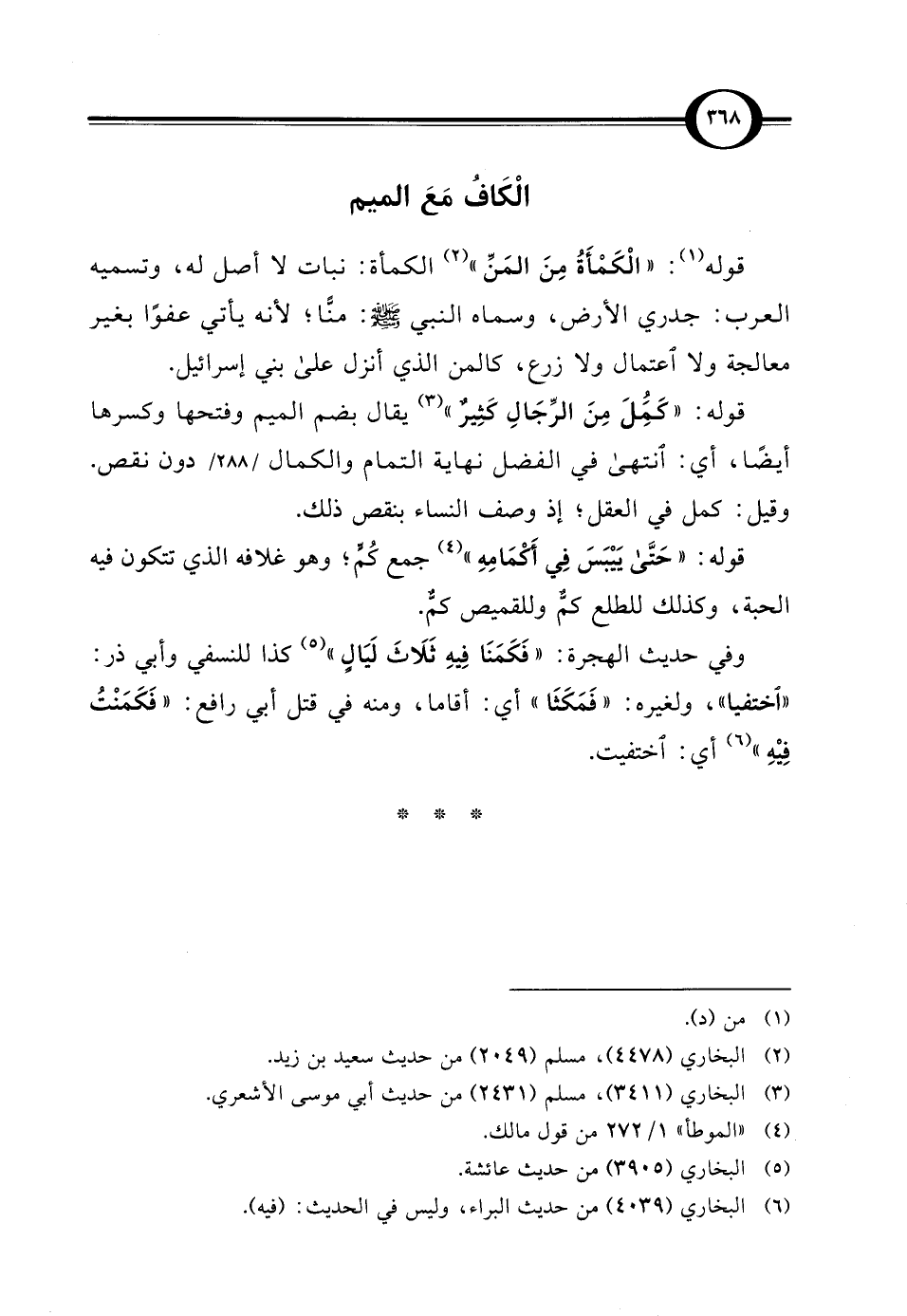 قوله (¬1): "الْكَمْأَةُ مِنَ المَنِّ" (¬2) الكمأة: نبات لا أصل له، وتسميه العرب: جدري الأرض، وسماه النبي -صلى الله عليه وسلم-": مِنًّا؛ لأنه يأتي عفوًا بغير معالجة ولا اعتمال ولا زرع، كالمن الذي أنزل على بني إسرائيل.