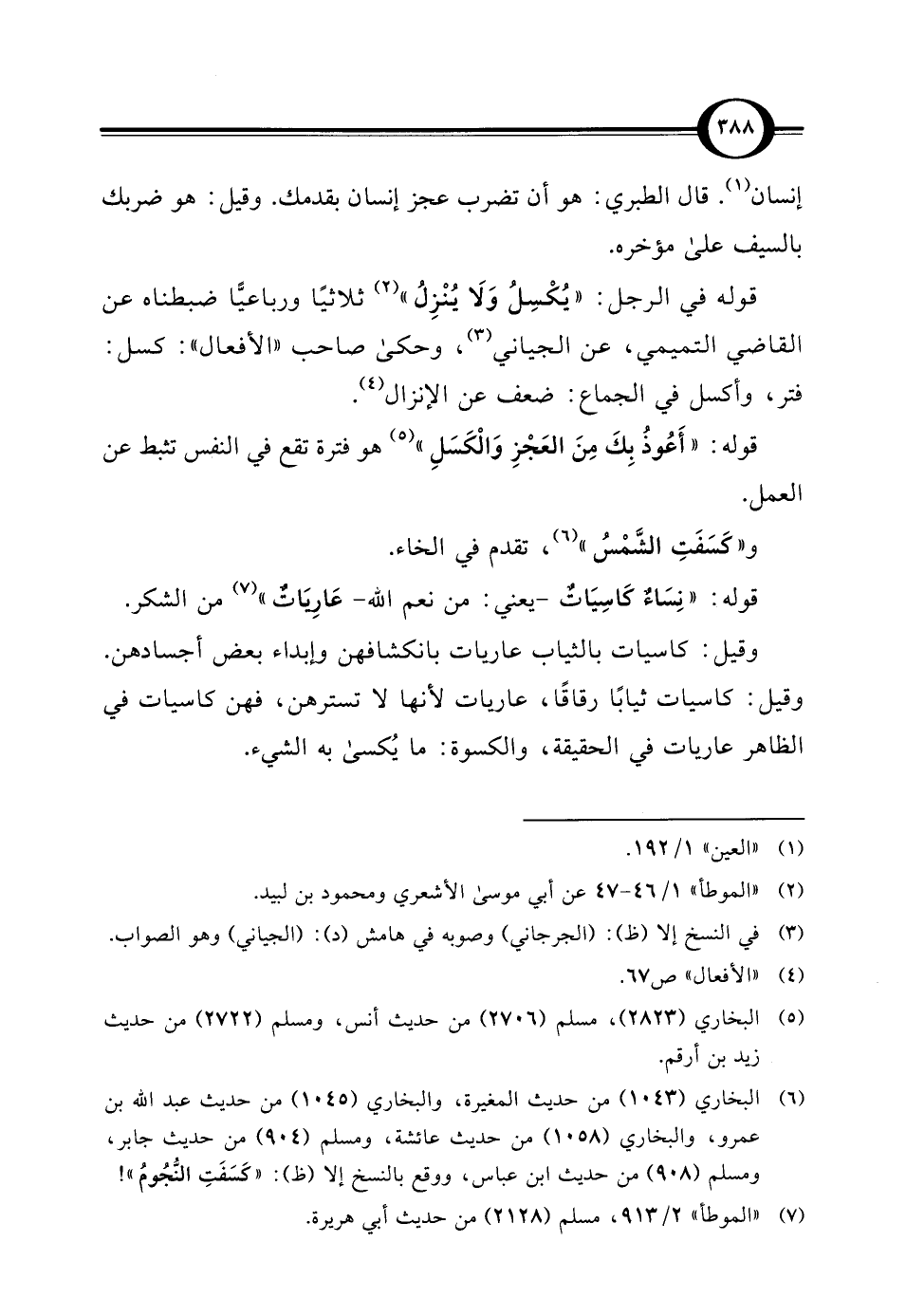 قوله في الرجل: "يُكْسِلُ وَلا يُنْزِلُ" (¬2) ثلاثيًا ورباعيًّا ضبطناه عن القاضي التميمي، عن الجياني (¬3)، وحكا صاحب "الأفعال": كسل: فتر، وأكسل في الجماع: ضعف عن الإنزال (¬4).